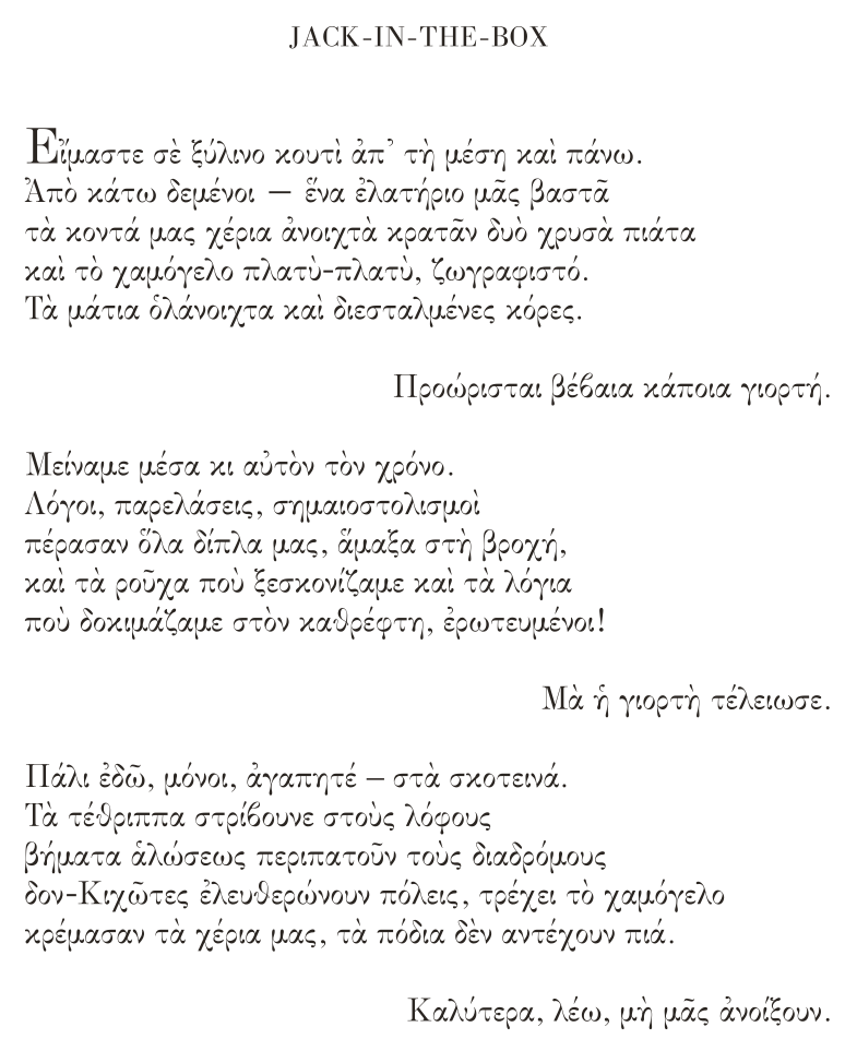 ΠΡΟΛΟΓΟΣ Φθινόπωρο βράδυ Εις φίλην ξενιτευθείσαν Περίμενε Λοξά σενάρια Αίσθηση Τελευταία ματιά Πειρατία Οθνείη γαίη Ελένη Οινοθύελλα Όνειρο Ξένος Νόστος Αγάπη La Soirée ΣΤΑΣΙΜΟΝ Χαρτοπαιξία Μεσσίας Ομοβροντία Παραμύθι Συμπόσιον Jack-in-the-box ΣτίγματαΠροδοσία Μέρες Αυτοκρατοριών Ταξίδι Άφεσις Είπες Νόμος Brave New World Συμβουλή ΕΞΟΔΟΣ επόμενο προηγούμενο τα ποιήματα επόμενο προηγούμενο τα ποιήματα επόμενο προηγούμενο τα ποιήματα επόμενο προηγούμενο τα ποιήματα επόμενο προηγούμενο τα ποιήματα επόμενο προηγούμενο τα ποιήματα επόμενο προηγούμενο τα ποιήματα επόμενο προηγούμενο τα ποιήματα επόμενο προηγούμενο τα ποιήματα επόμενο προηγούμενο τα ποιήματα επόμενο προηγούμενο τα ποιήματα επόμενο προηγούμενο τα ποιήματα επόμενο προηγούμενο τα ποιήματα επόμενο προηγούμενο τα ποιήματα επόμενο προηγούμενο τα ποιήματα επόμενο προηγούμενο τα ποιήματα επόμενο προηγούμενο τα ποιήματα επόμενο προηγούμενο τα ποιήματα επόμενο προηγούμενο τα ποιήματα επόμενο προηγούμενο τα ποιήματα επόμενο προηγούμενο τα ποιήματα επόμενο προηγούμενο τα ποιήματα επόμενο προηγούμενο τα ποιήματα επόμενο προηγούμενο τα ποιήματα επόμενο προηγούμενο τα ποιήματα επόμενο προηγούμενο τα ποιήματα επόμενο προηγούμενο τα ποιήματα επόμενο προηγούμενο τα ποιήματα επόμενο προηγούμενο τα ποιήματα επόμενο προηγούμενο τα ποιήματα επόμενο προηγούμενο τα ποιήματα επόμενο (πίσω)