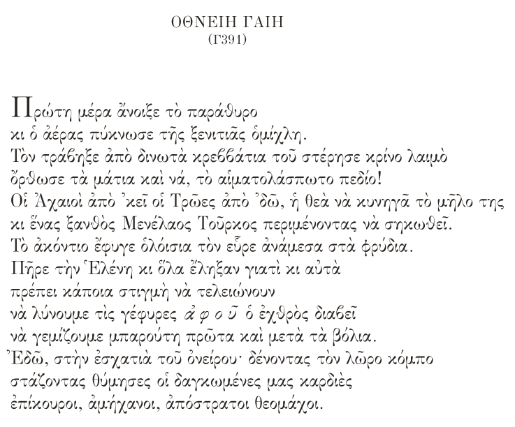 ΚΝΕΦΑΣ Γ1. Εις φίλον ξενιτευθέντα Γ2. Θεοσκότεινη μπαλλάντα Γ3. Cinque ports Γ4. Οδός Κυρίου Γ5. Οξφόρδη, 1066 μ.Χ. Γ6. Adam & Eve St. Γ7. Αγία Ορσαλία Γ8. Νέκυια |