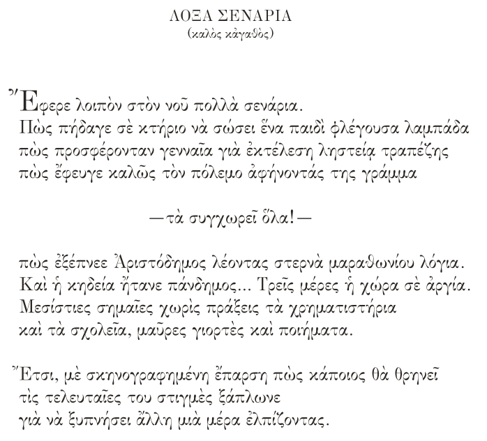 ΗΜΑΡ Β1. Ευριδίκη Β2. Χαρταετός Β3. Πήγασος Β4. Λατομείο Β5. Οι γυναίκες τού Anstey Β6. Τα φίδια Β7. Θησέας Β8. Μηδικά-1821 |